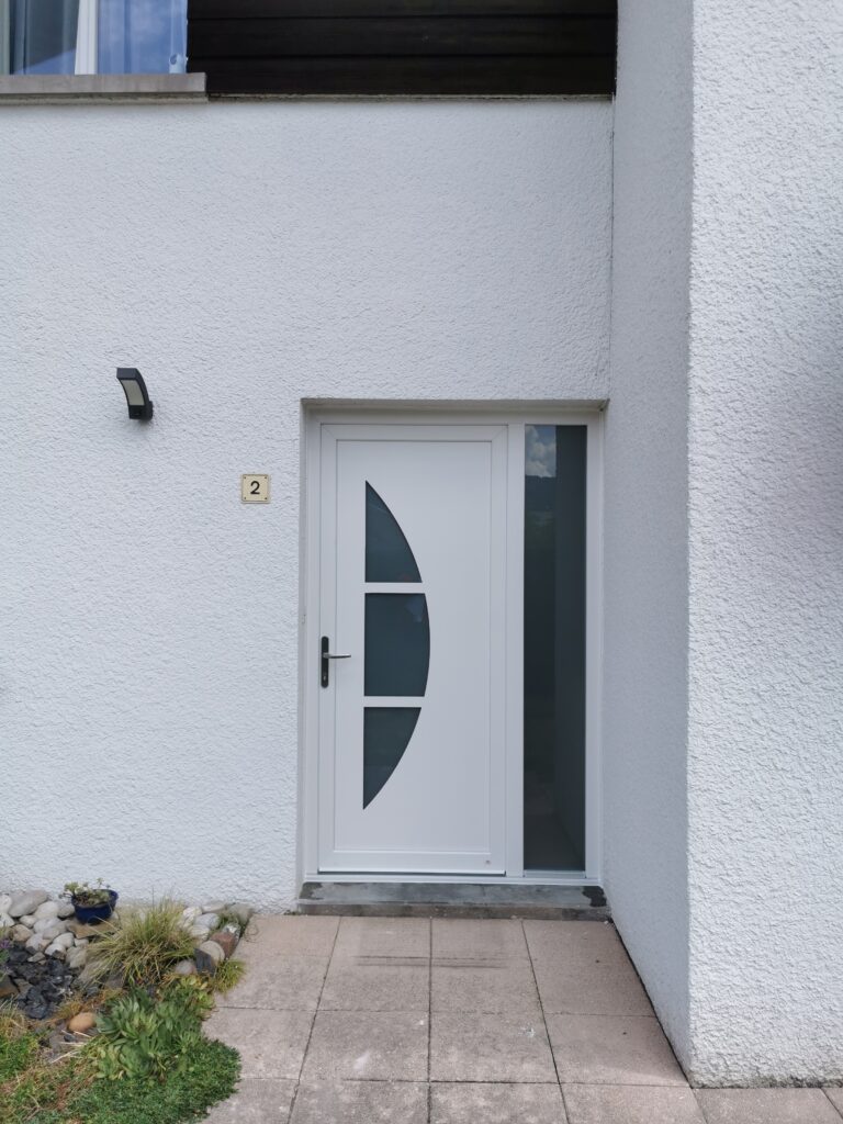La porte d’entrée vitrée apporte de la lumière naturelle tout en conservant un haut niveau de confort et de sécurité.